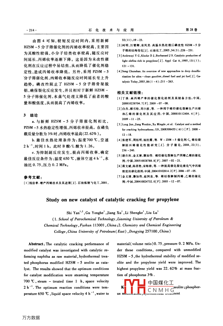 催化裂解制丙烯新型催化剂的研究