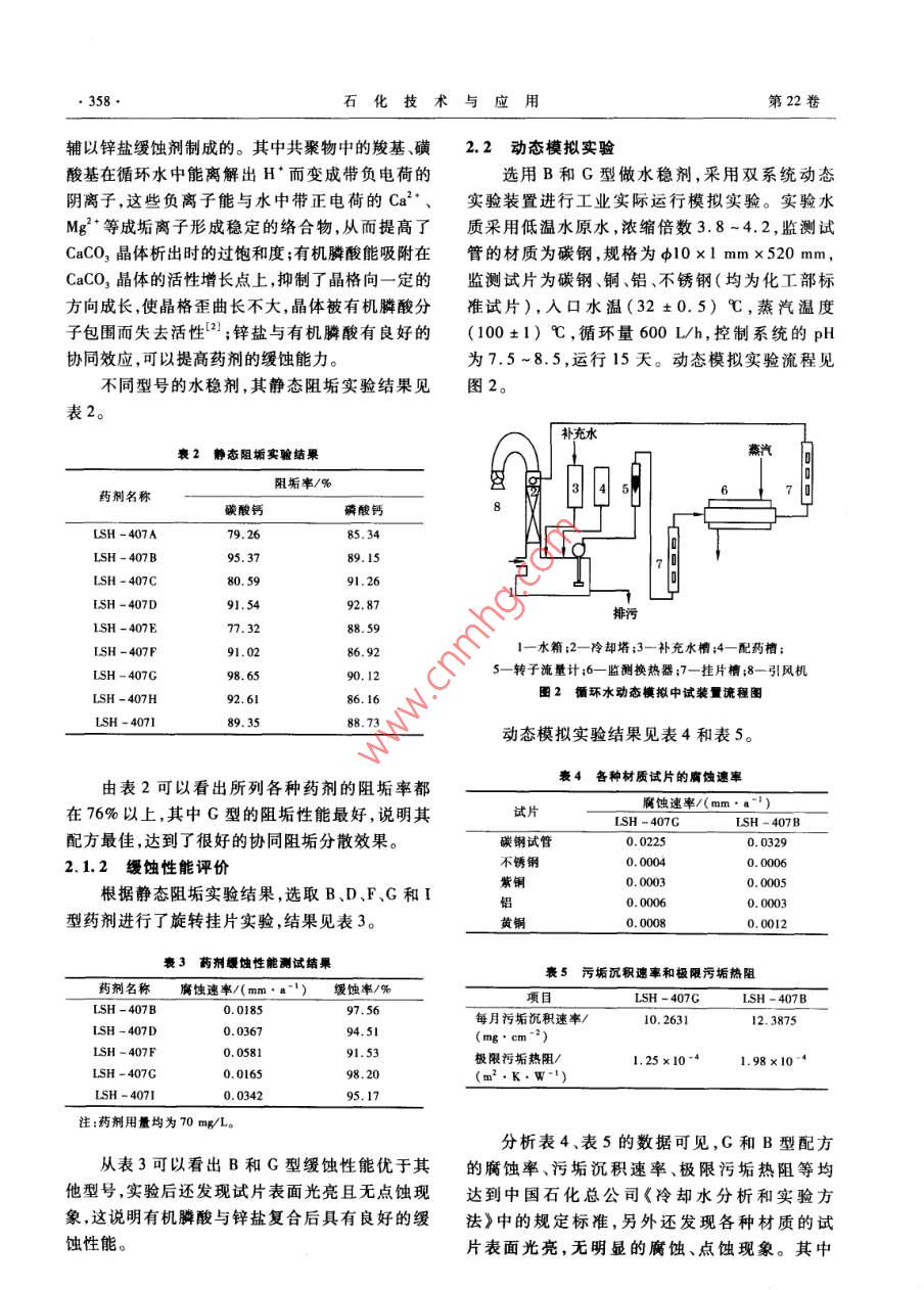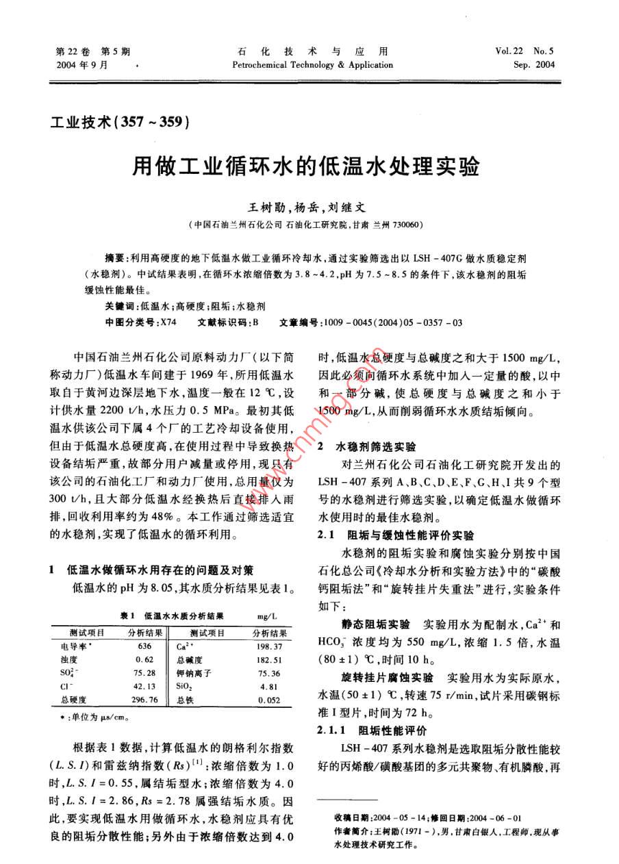 用做工业循环水的低温水处理实验