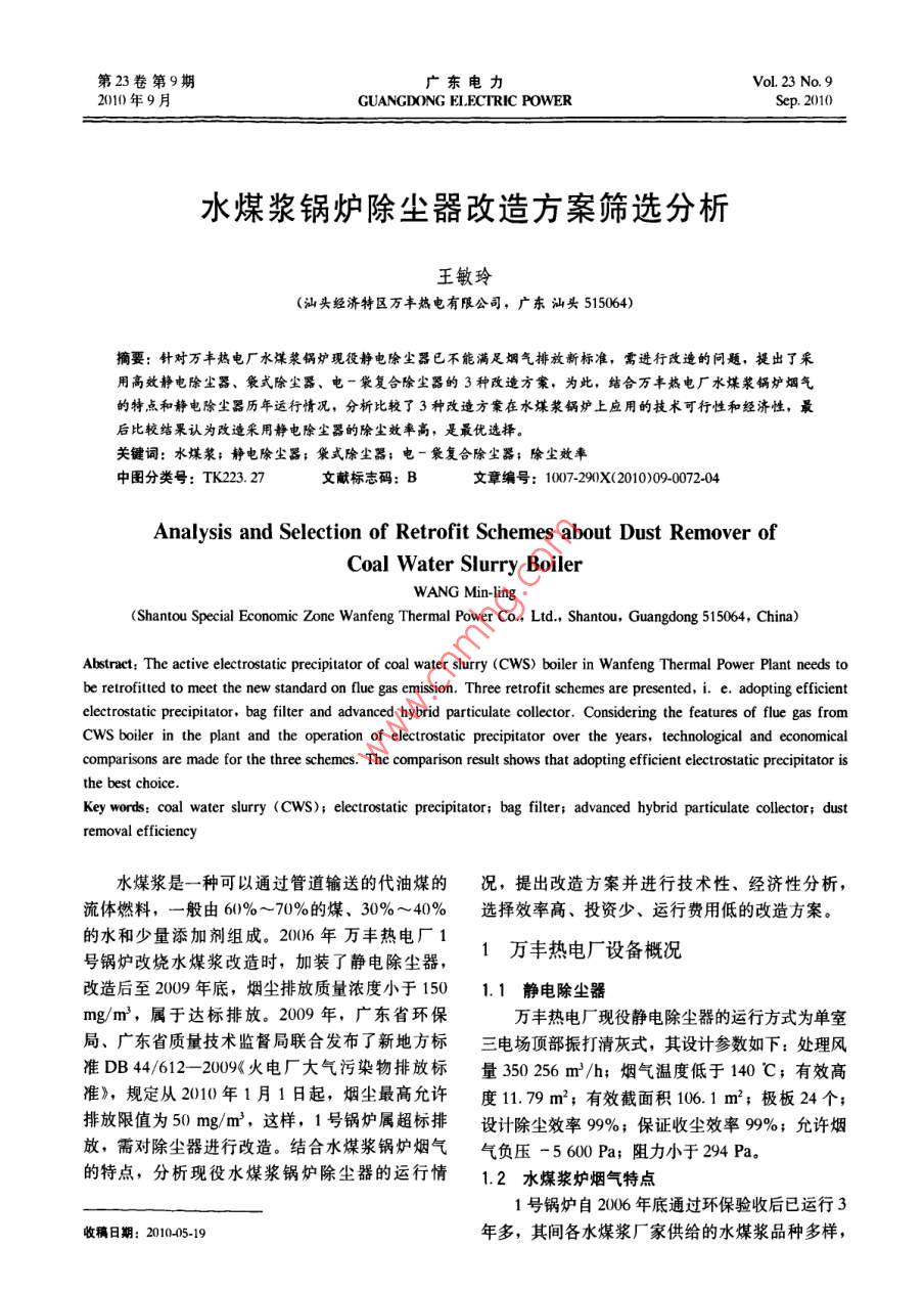 - 作者单位:汕头经济特区万丰热电有限公司