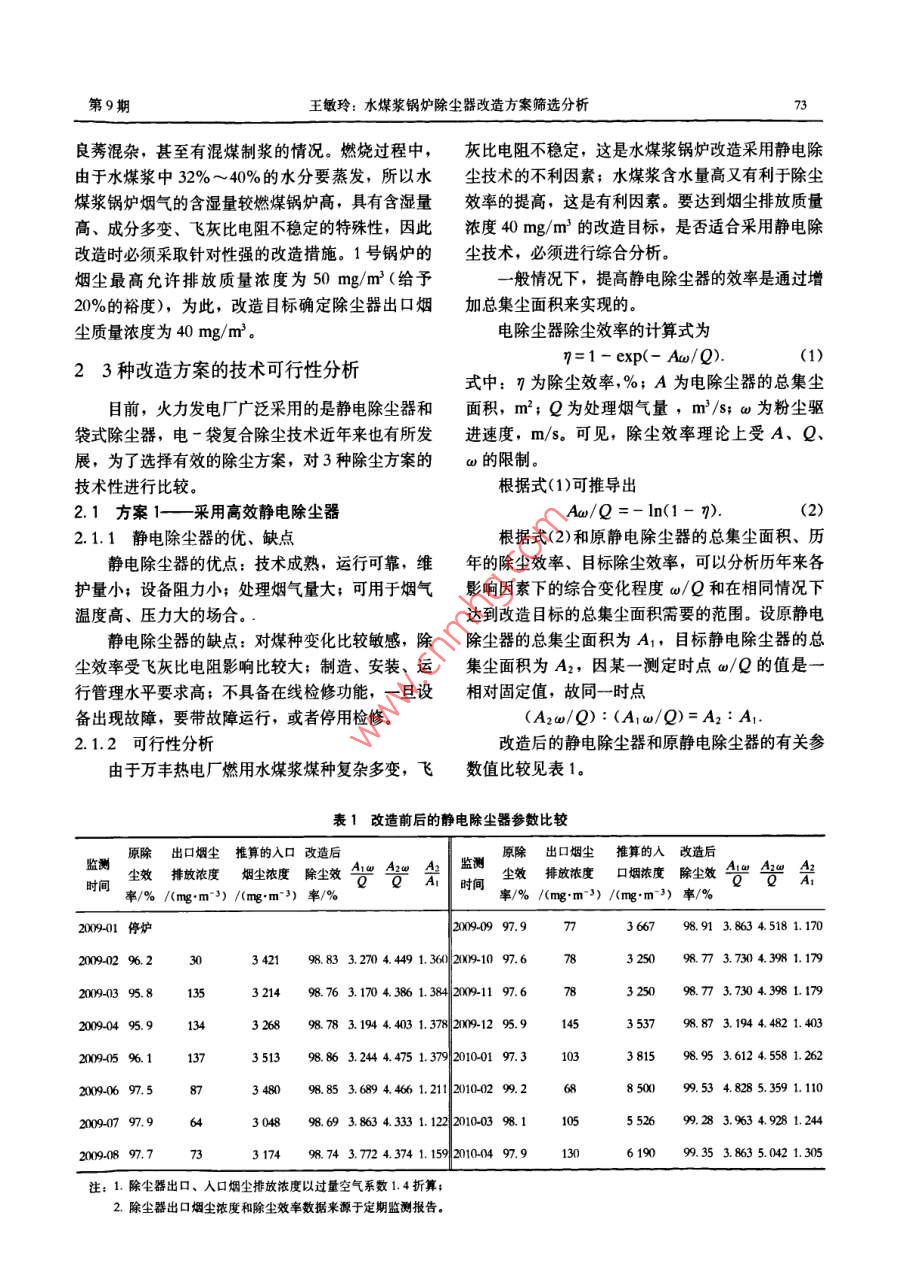 水煤浆锅炉除尘器改造方案筛选分析