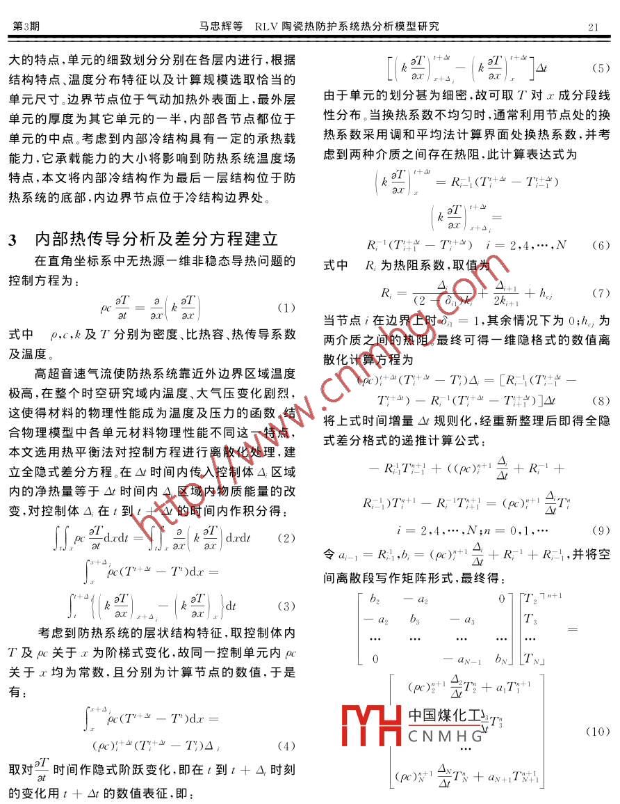 RLV陶瓷热防护系统热分析模型研究