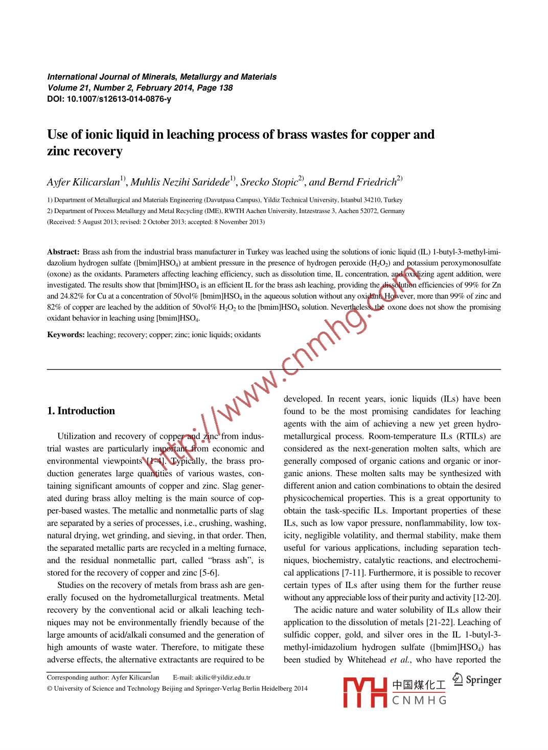 - 作者单位:Department of Metal urgical and Materials Engineering Davutpasa Campus,Department of Process Metal urgy and Metal Recycl
