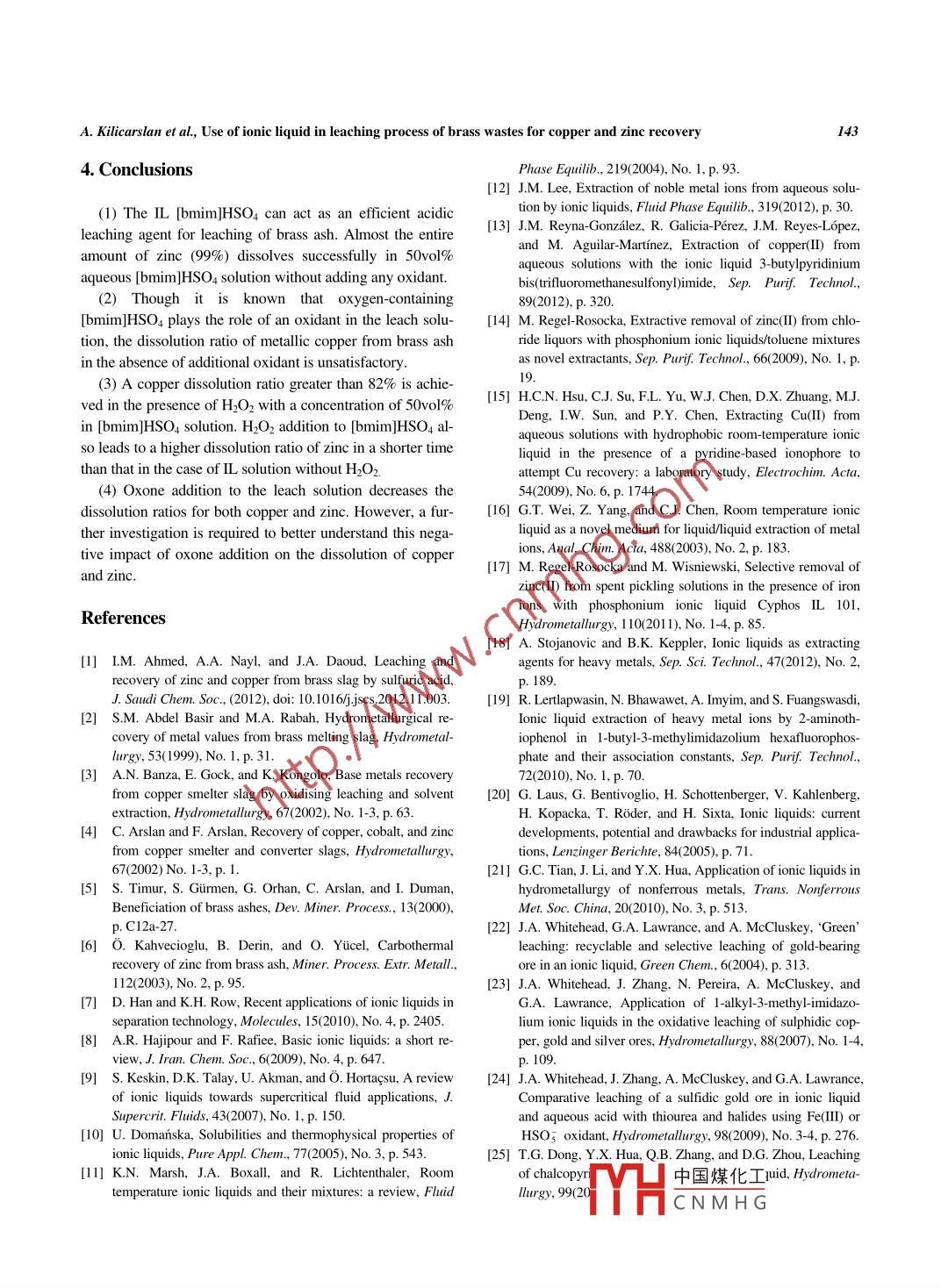 Use of ionic liquid in leaching process of brass wastes for copper and zinc recovery