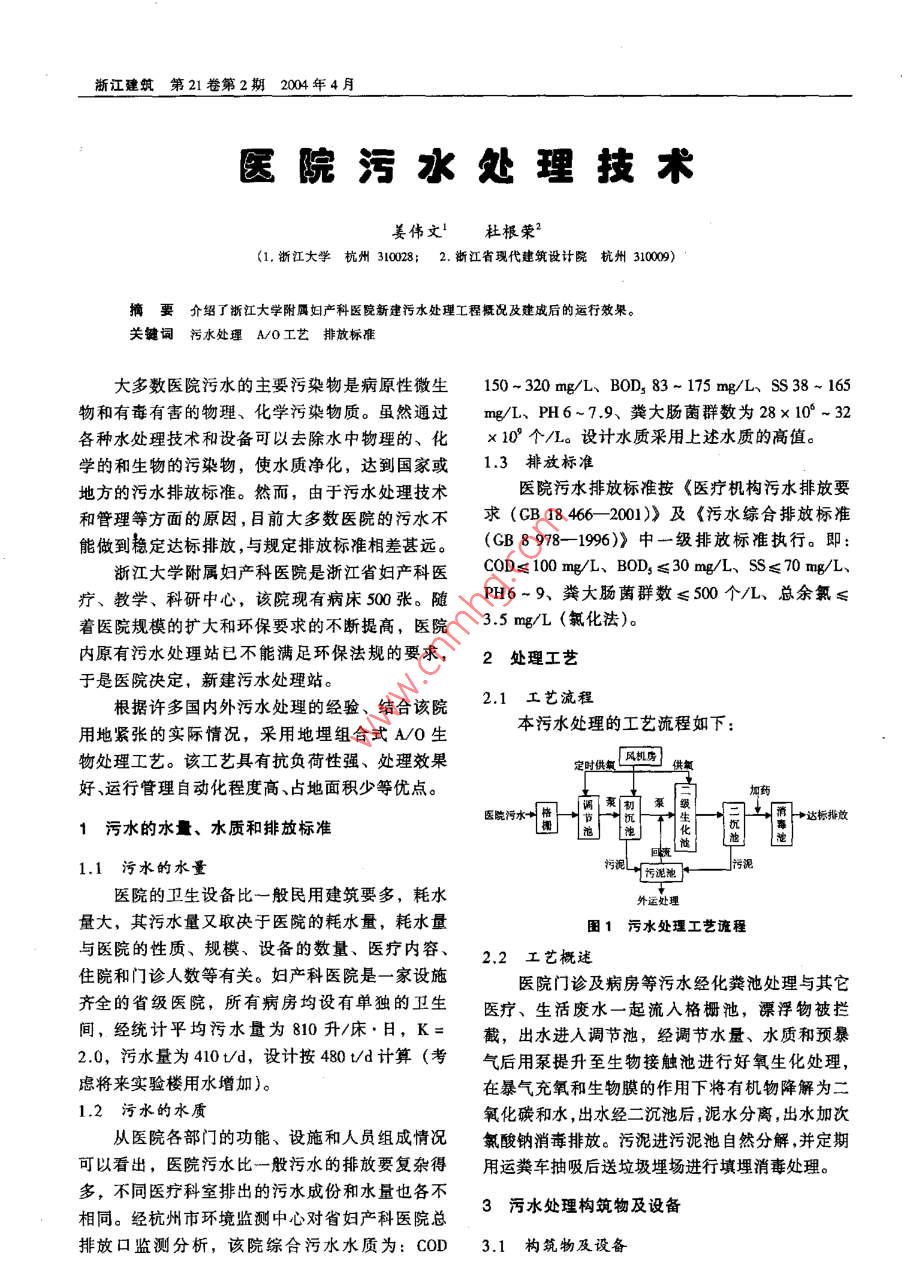 医院污水处理技术