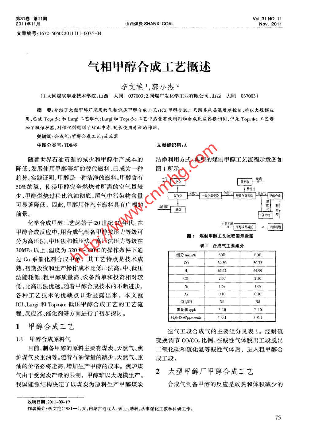 气相甲醇合成工艺概述