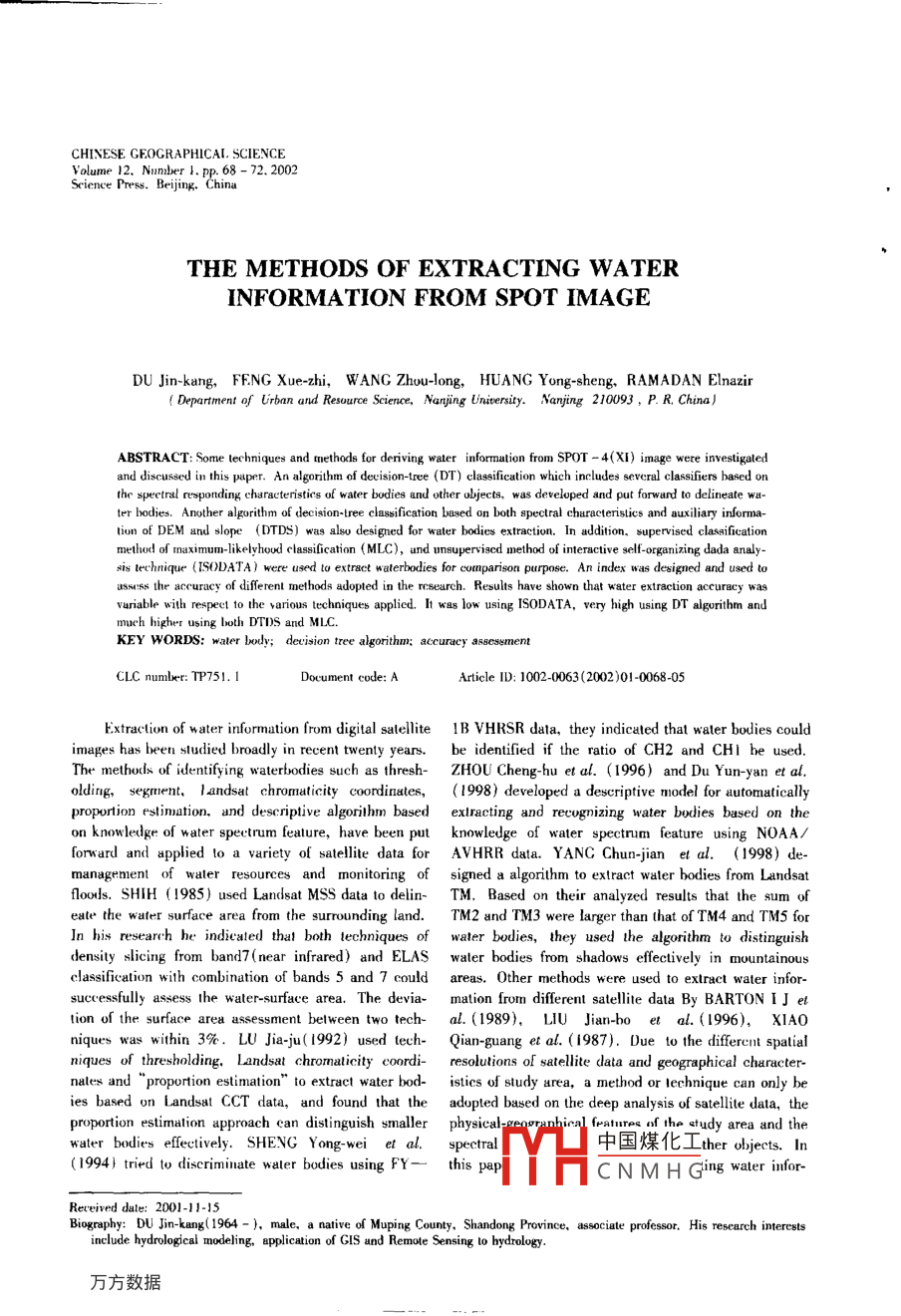 - 论文作者:DU Jin-kang,FENG Xue-zhi,WANG
