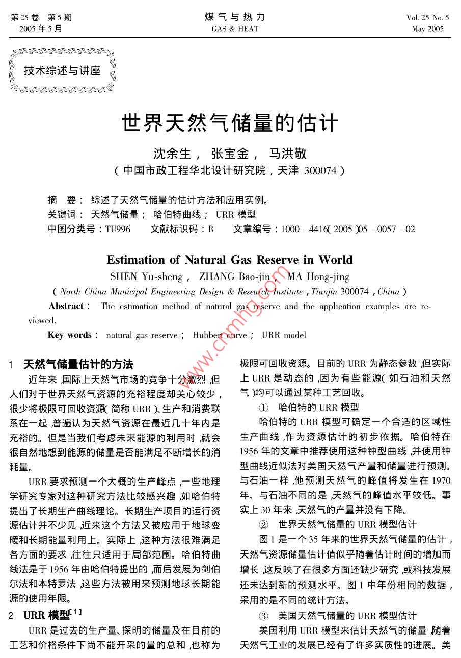 世界天然气储量的估计