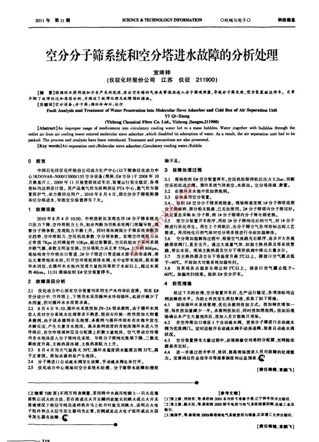 空分分子筛系统和空分塔进水故障的分析处理