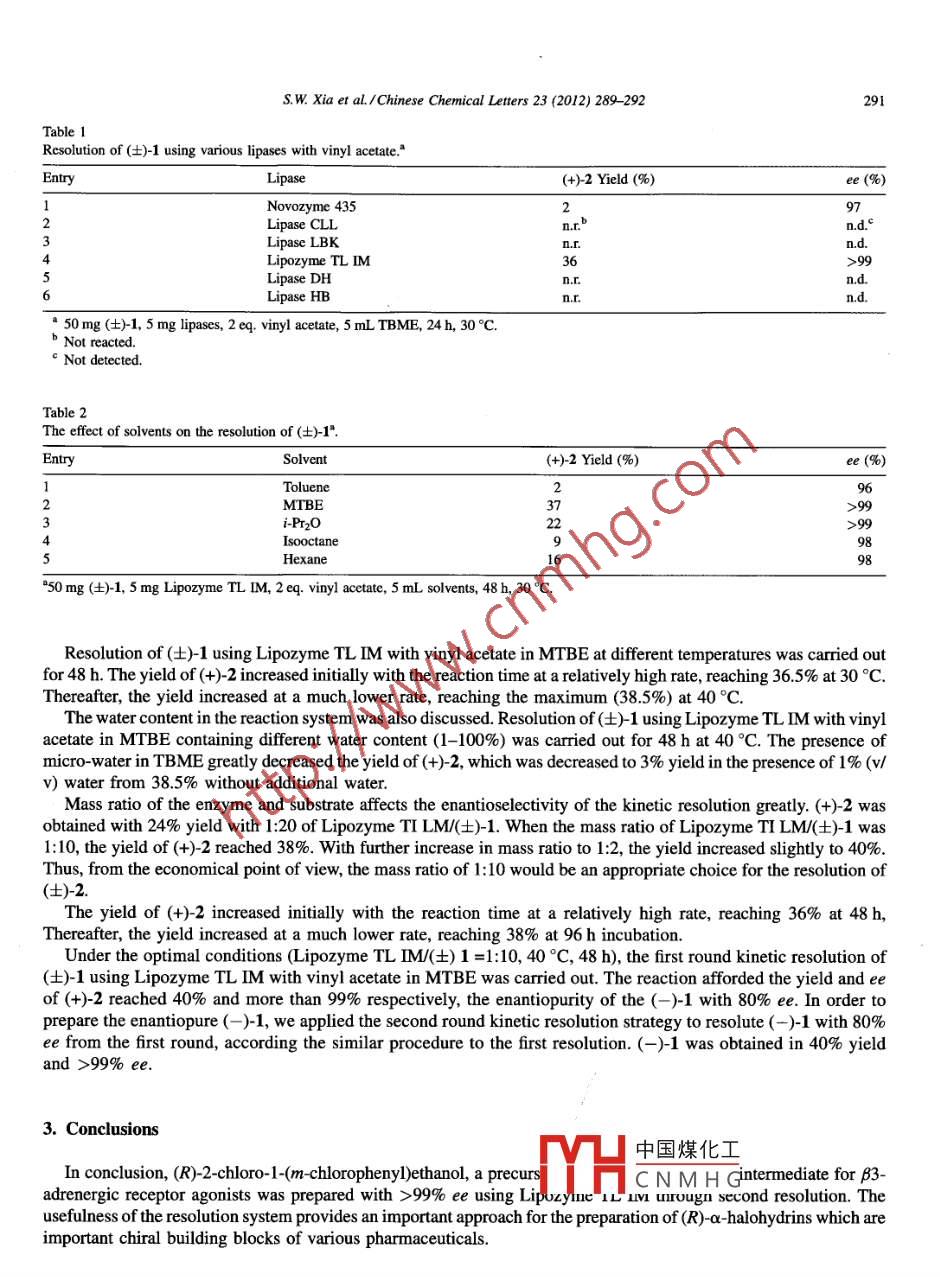 Preparation of (R)-2-chloro-l-(m-chlorophenyl)ethanol by Lipozyme TL IM-catalyzed second resolution