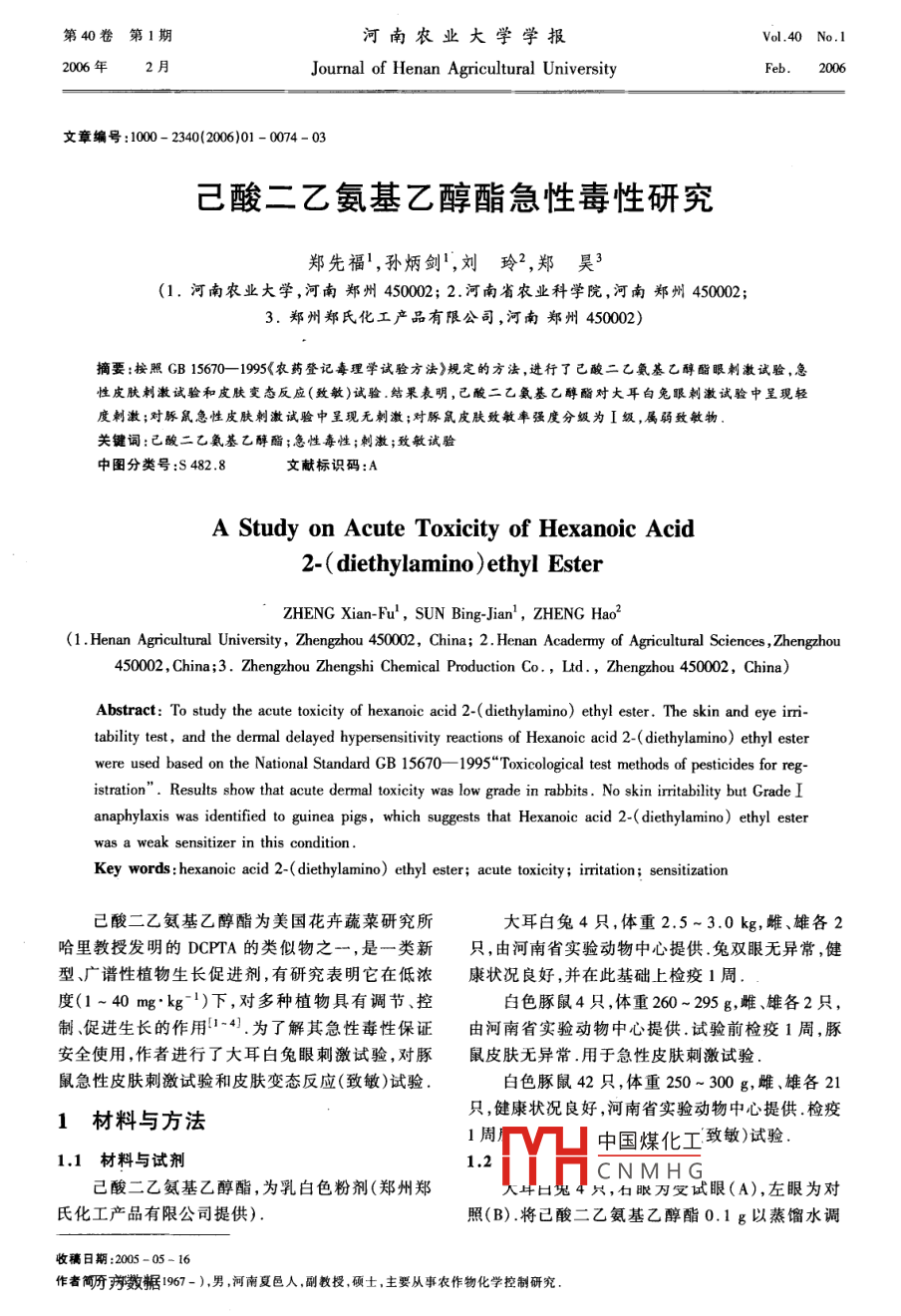 - 作者单位:河南农业大学,河南省农业科学院,郑州郑氏化工产品有限公司