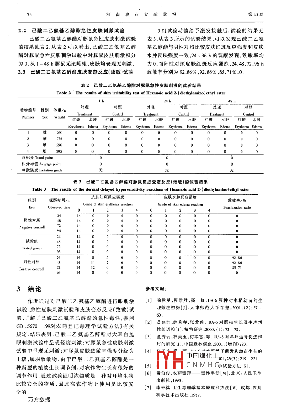 己酸二乙氨基乙醇酯急性毒性研究