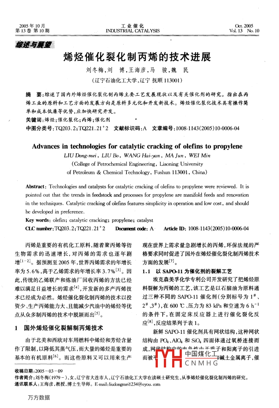 - 期刊名字:工业催化