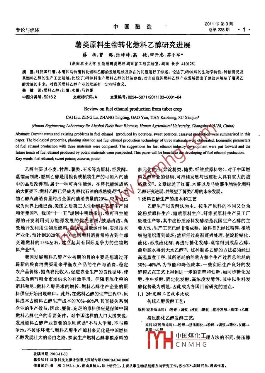 薯类原料生物转化燃料乙醇研究进展