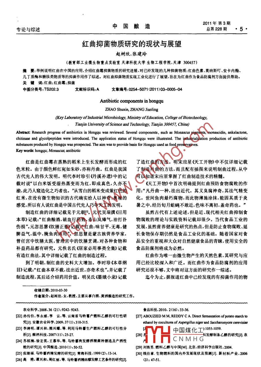 - 期刊名字:中国酿造