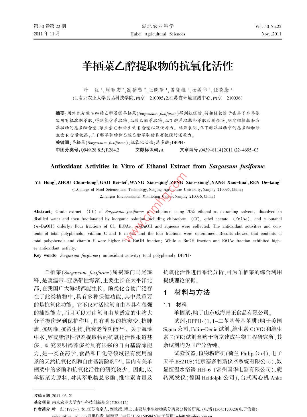 - 作者单位:南京农业大学食品科技学院,江苏省环境监测中心