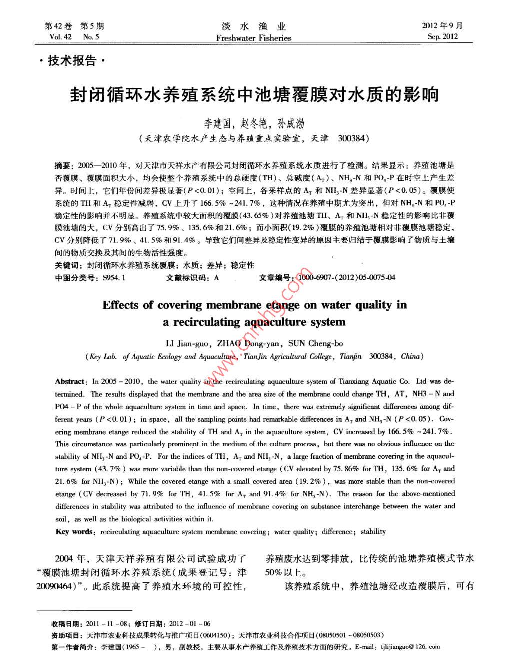 - 作者单位:天津农学院水产生态与养殖重点实验室
