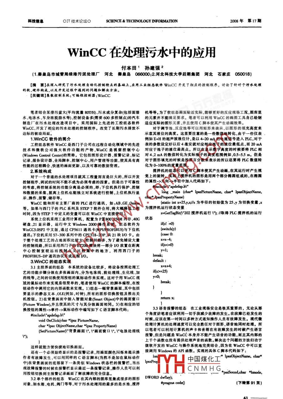 WinCC在处理污水中的应用