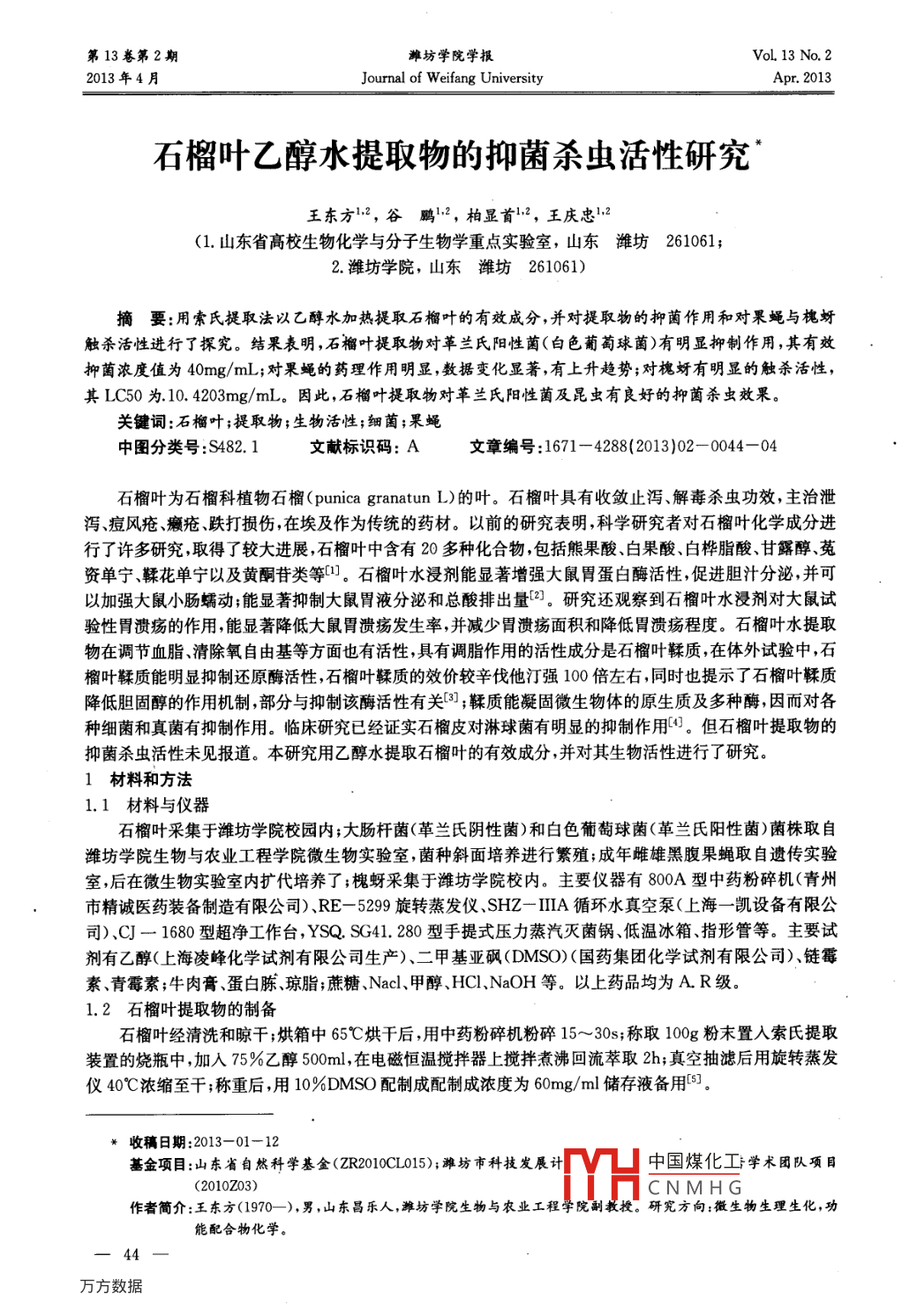 石榴叶乙醇水提取物的抑菌杀虫活性研究