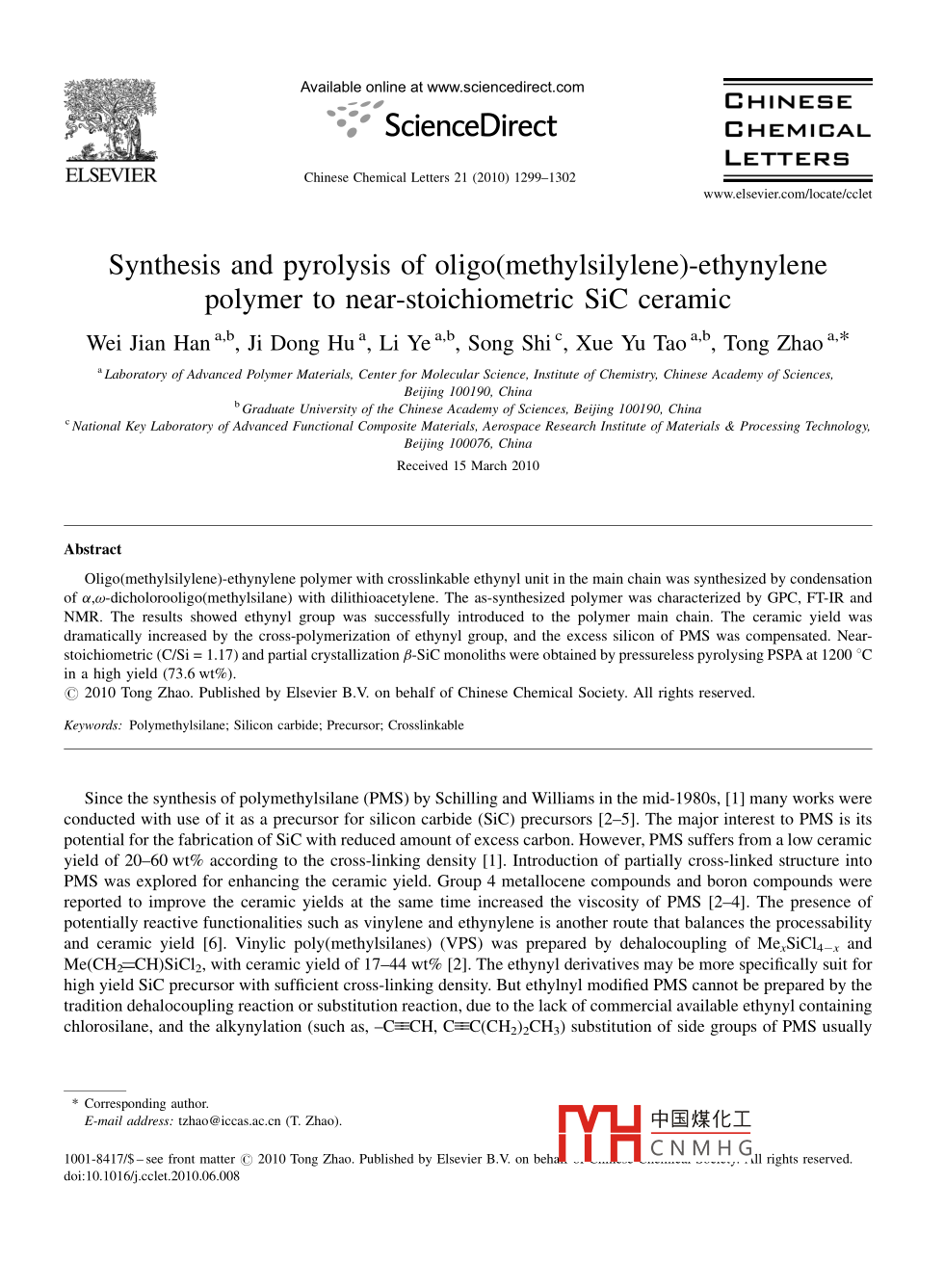 Synthesis and pyrolysis of oligo(methylsilylene)-ethynylene polymer to near-stoichiometric SiC ceram