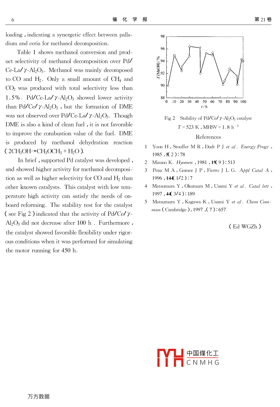 Pd/Ce/γ-Al2O3和Pd/Ce-La/γ-Al2O3甲醇低温裂解催化剂