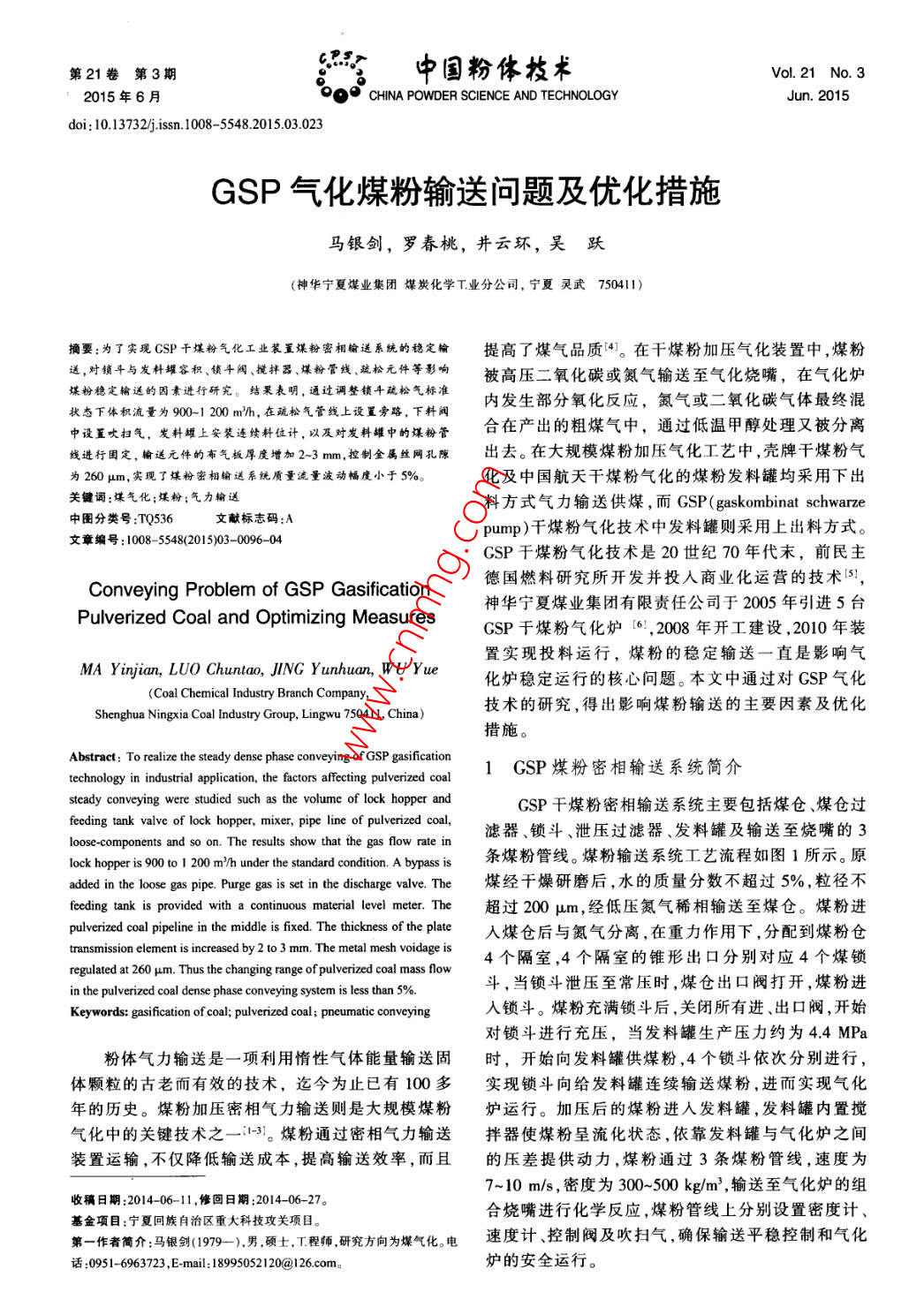 - 作者单位:神华宁夏煤业集团煤炭化学工业分公司