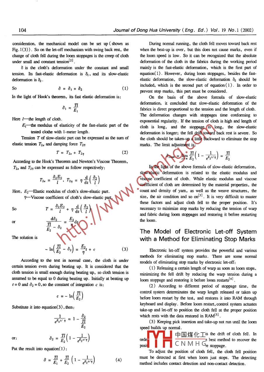 - 期刊名字:东华大学学报(英文版)