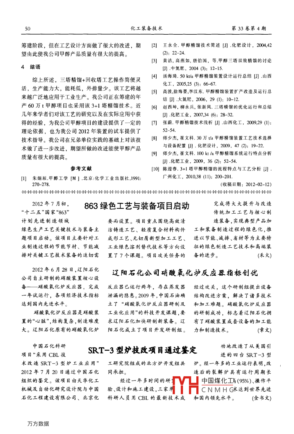 甲醇精馏的研究进展与应用