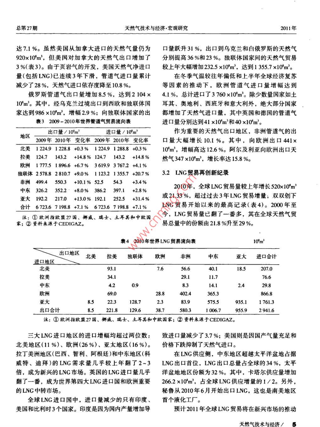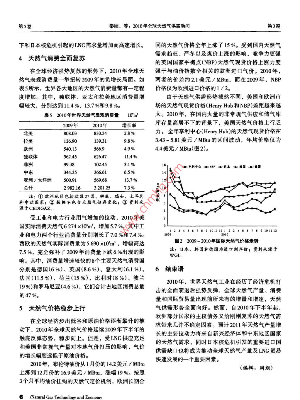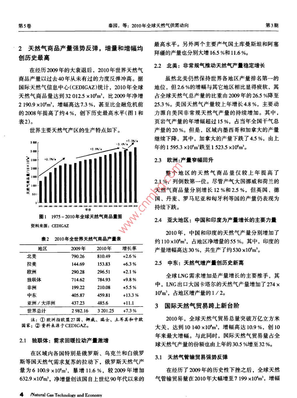 2010年全球天然气供需动向