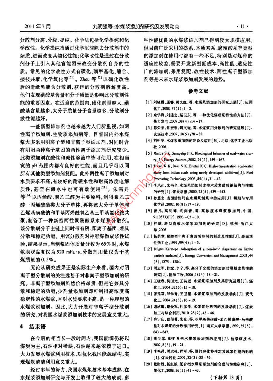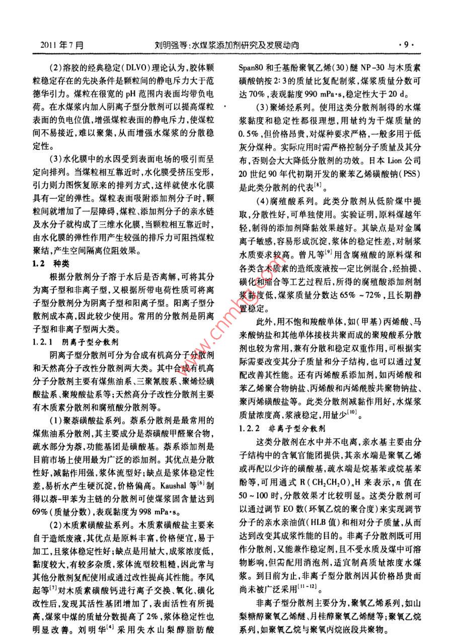 水煤浆添加剂研究及发展动向