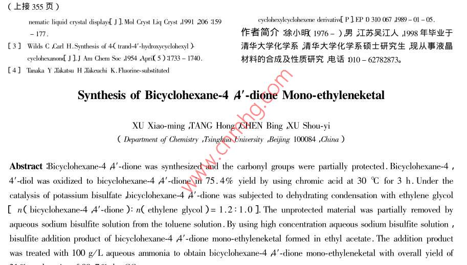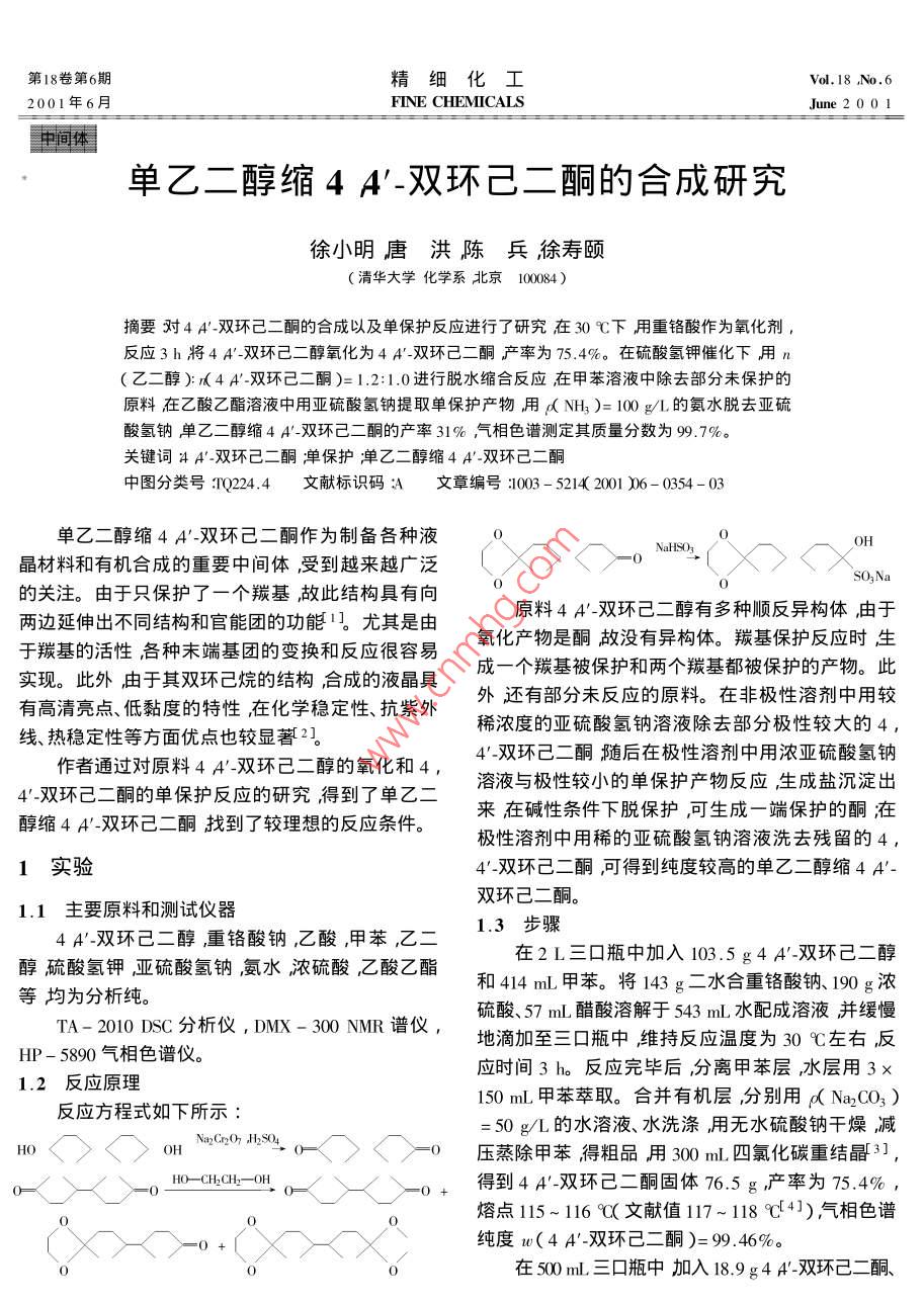 单乙二醇缩4,4′-双环己二酮的合成研究