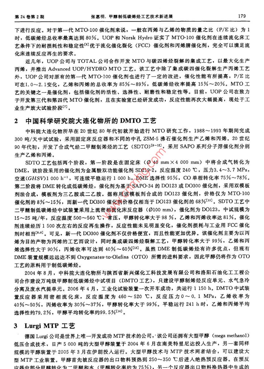 甲醇制低碳烯烃工艺技术新进展
