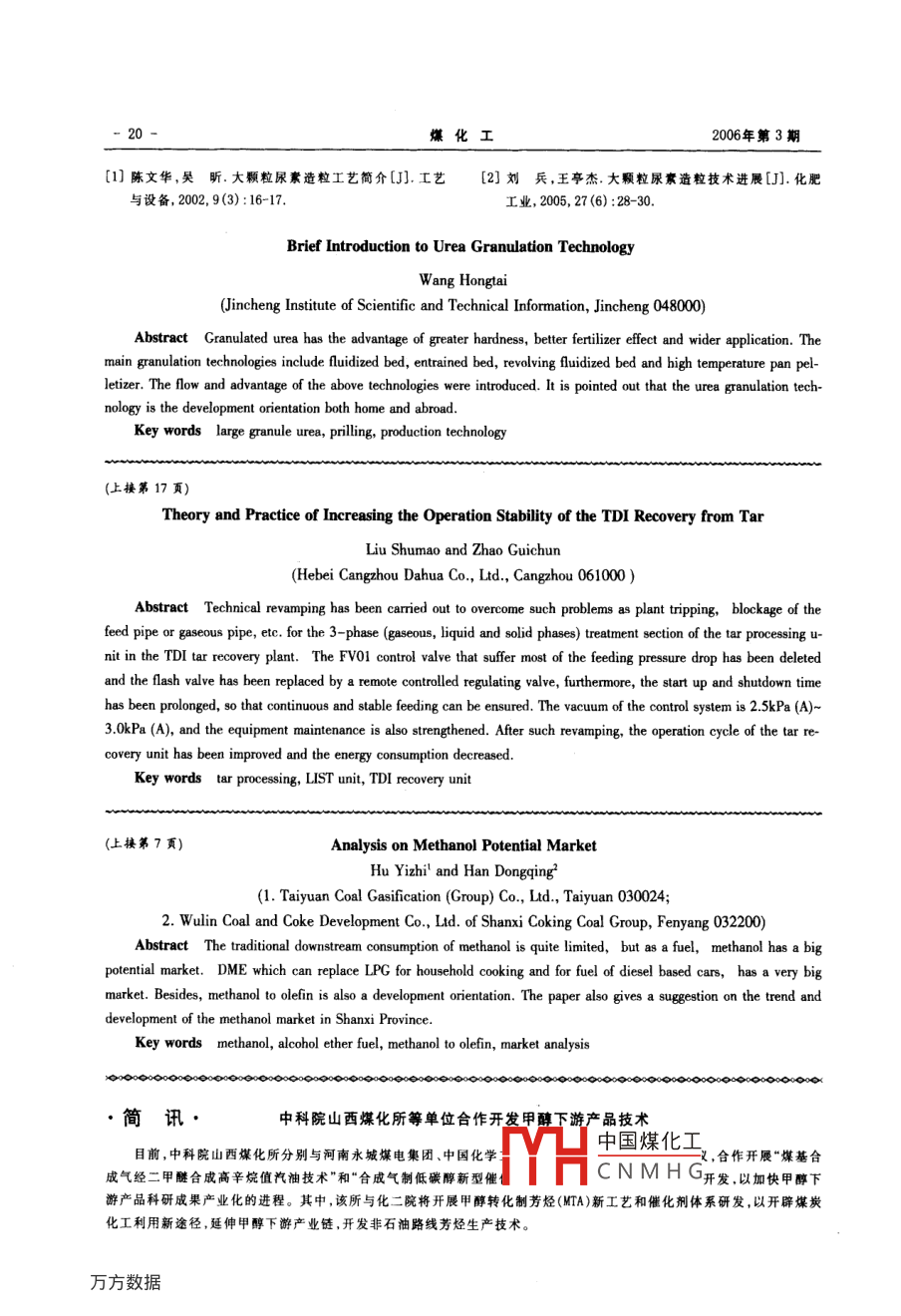 - 期刊名字:煤化工