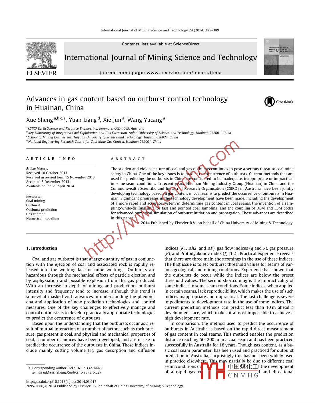 - 作者单位:CSIR0 Earth Science and Resource Engineering,National Engineering Research Centre for Coal Mine Gas Control