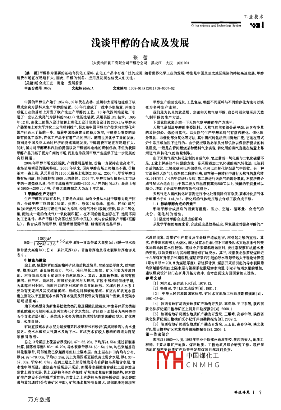 浅谈甲醇的合成及发展