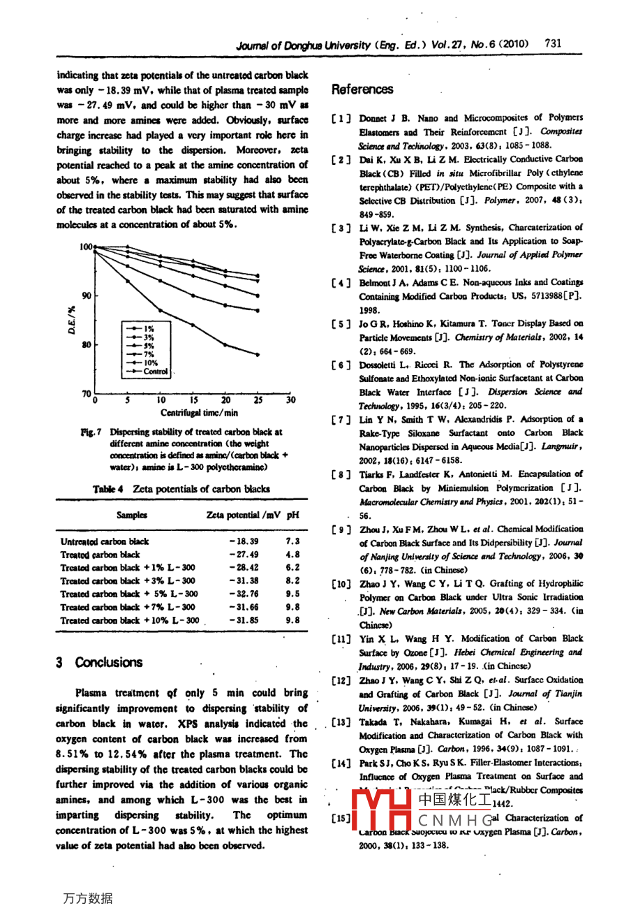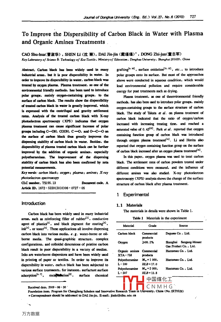 To Improve the Dispersibility of Carbon Black in Water with Plasma and Organic Amines Treatments