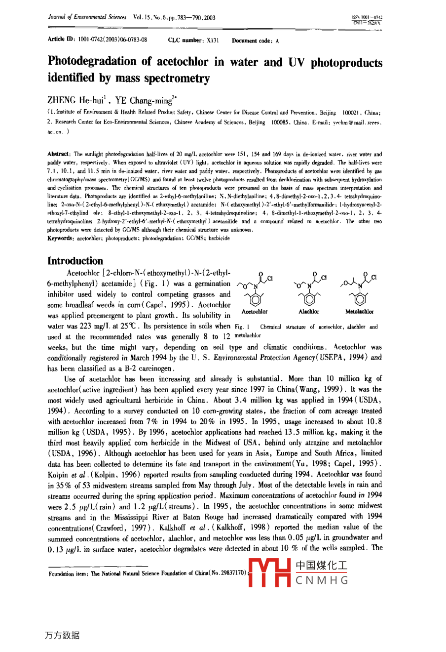 - 论文作者:ZHENG He-hui,YE Chang-ming