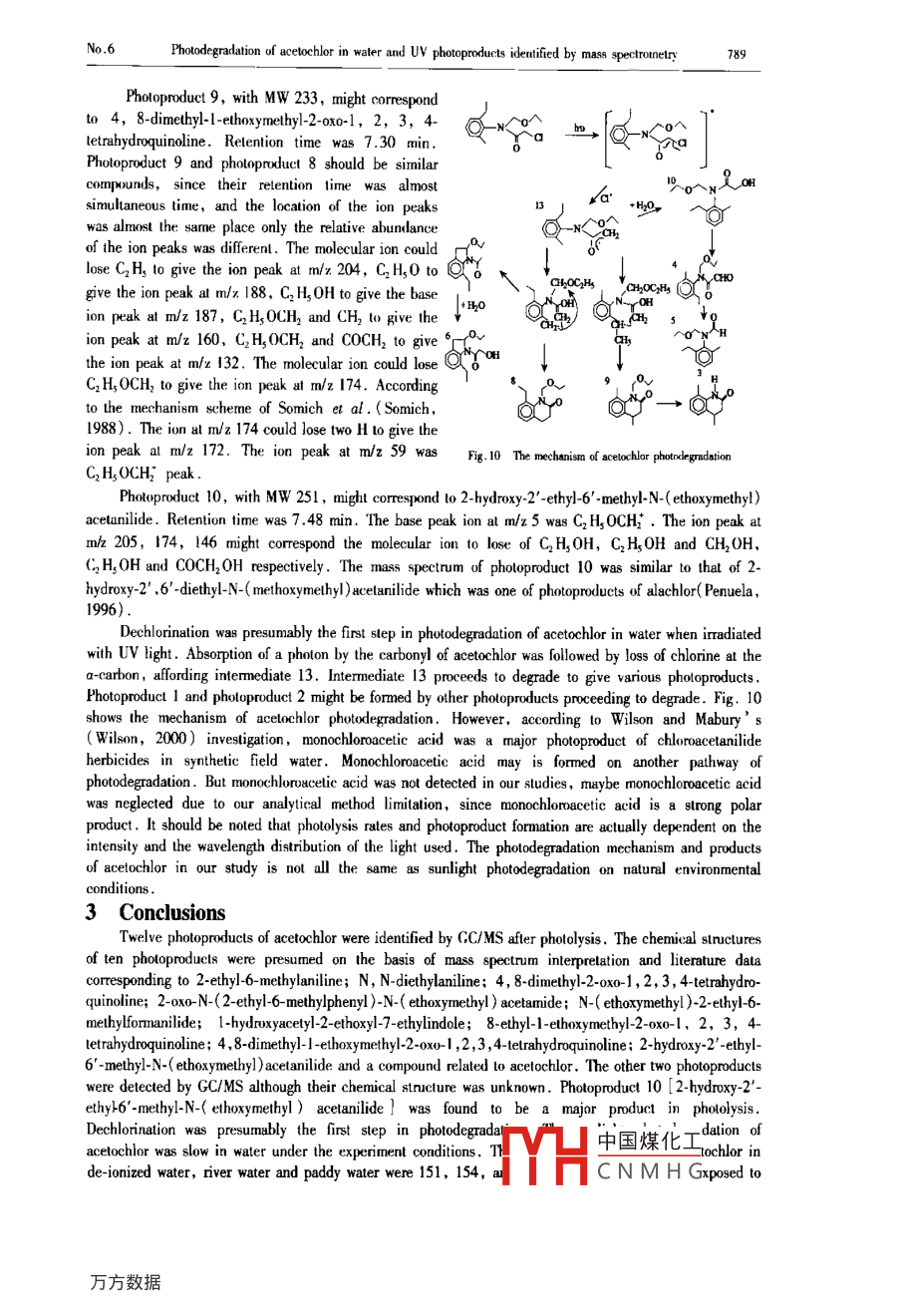 Photodegradation of acetochlor in water and UV photoproducts identified by mass spectrometry