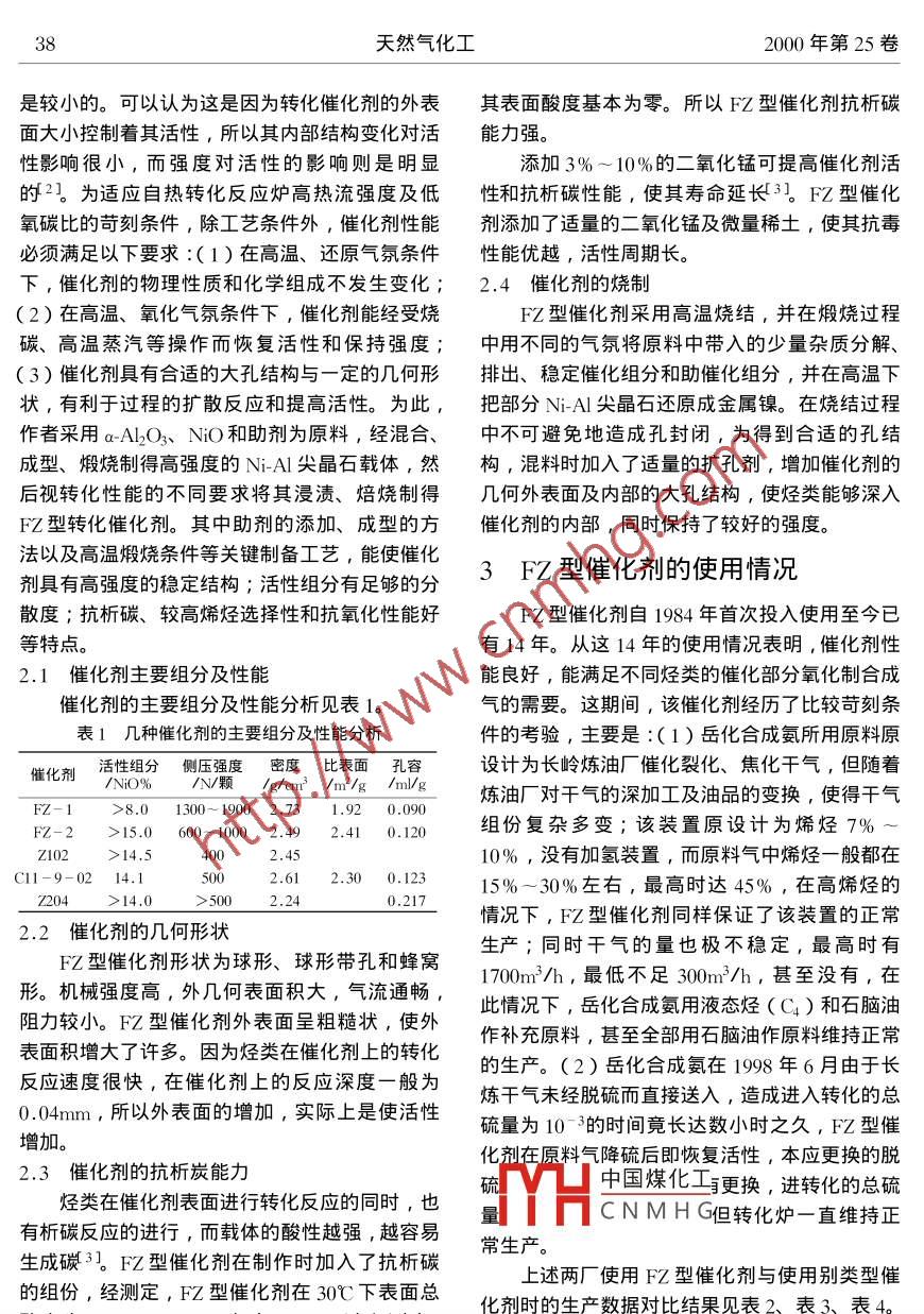 部分氧化制合成气FZ型催化剂的研制和使用