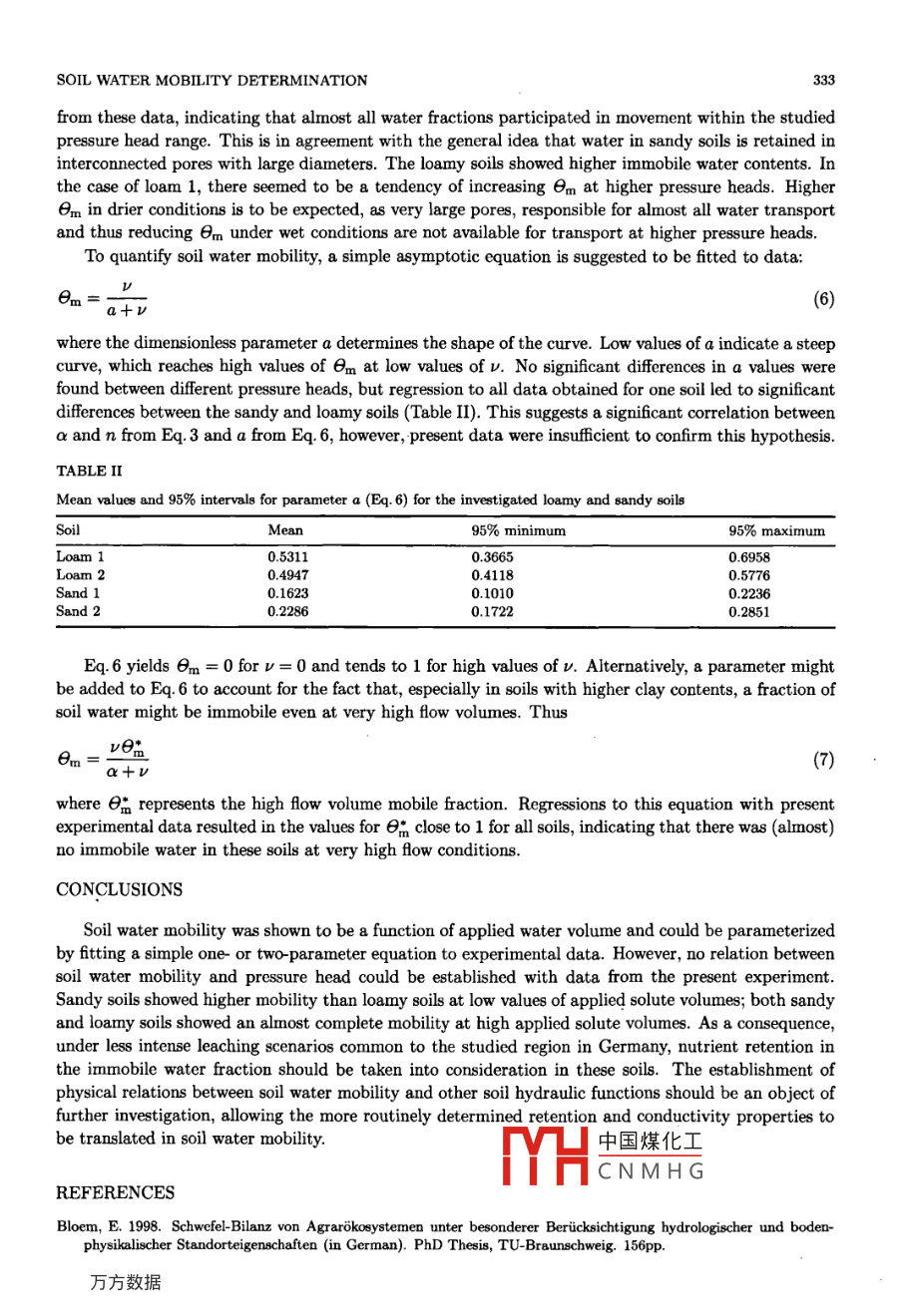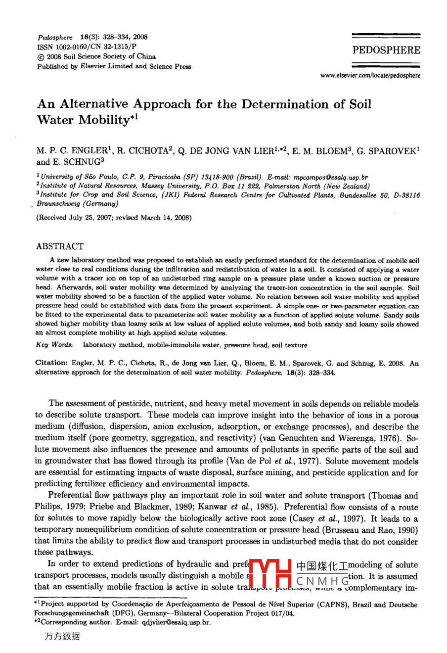 An Alternative Approach for the Determination of Soil Water Mobility