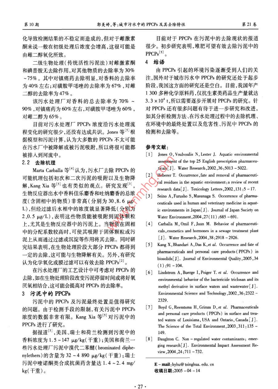 城市污水中的PPCPs及其去除特性