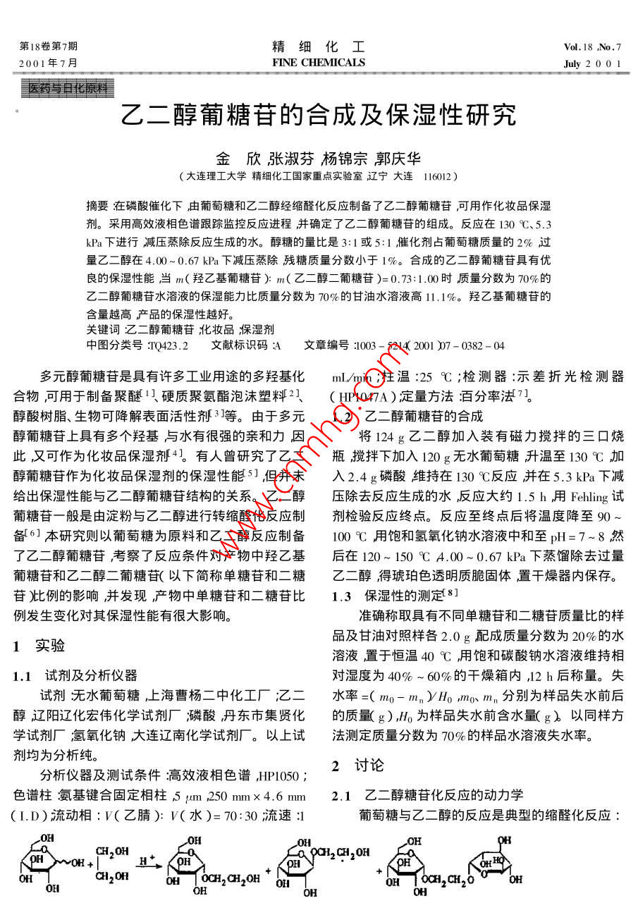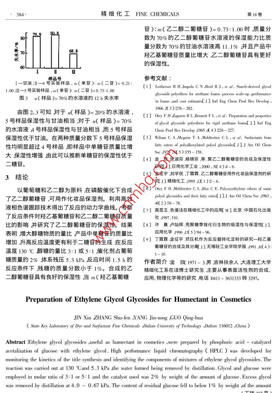 乙二醇葡糖苷的合成及保湿性研究