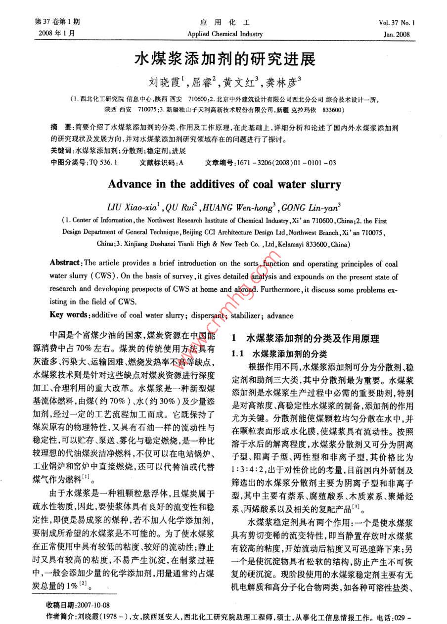 - 期刊名字:应用化工