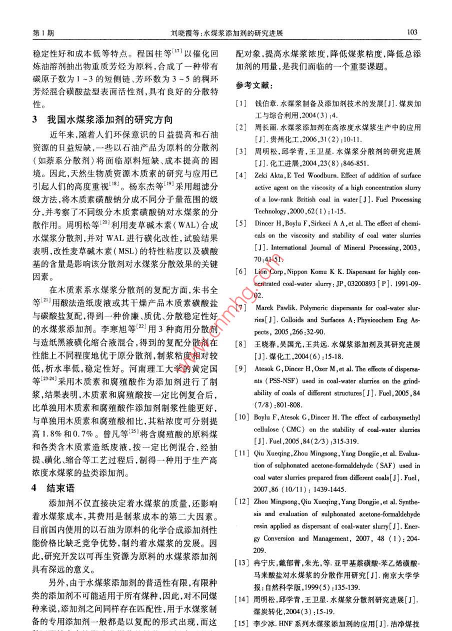 水煤浆添加剂的研究进展
