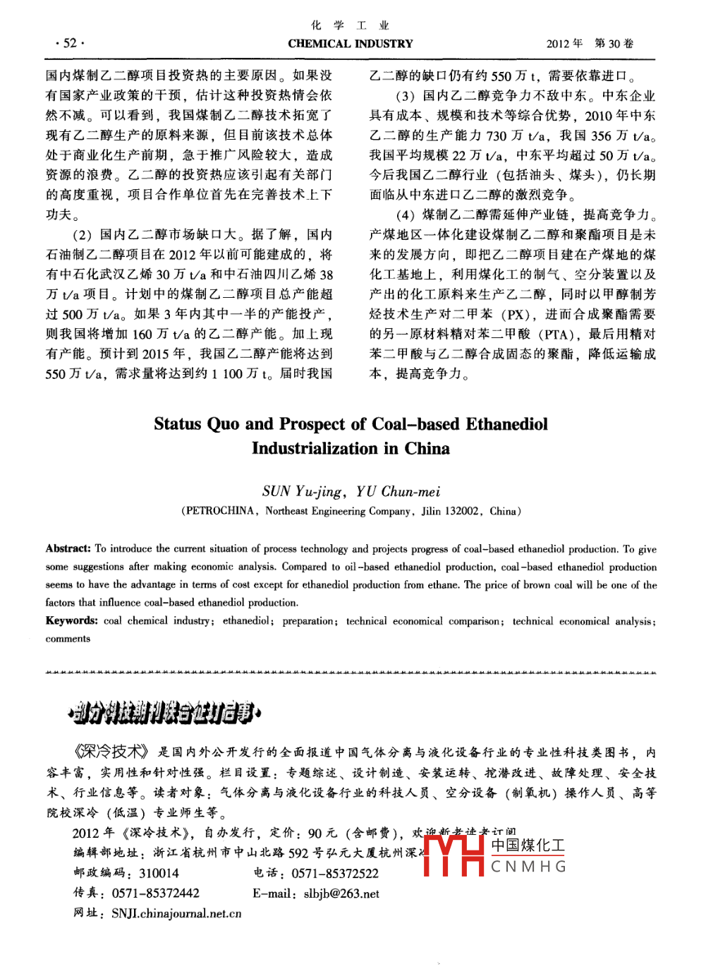 我国煤制乙二醇产业化现状与前景