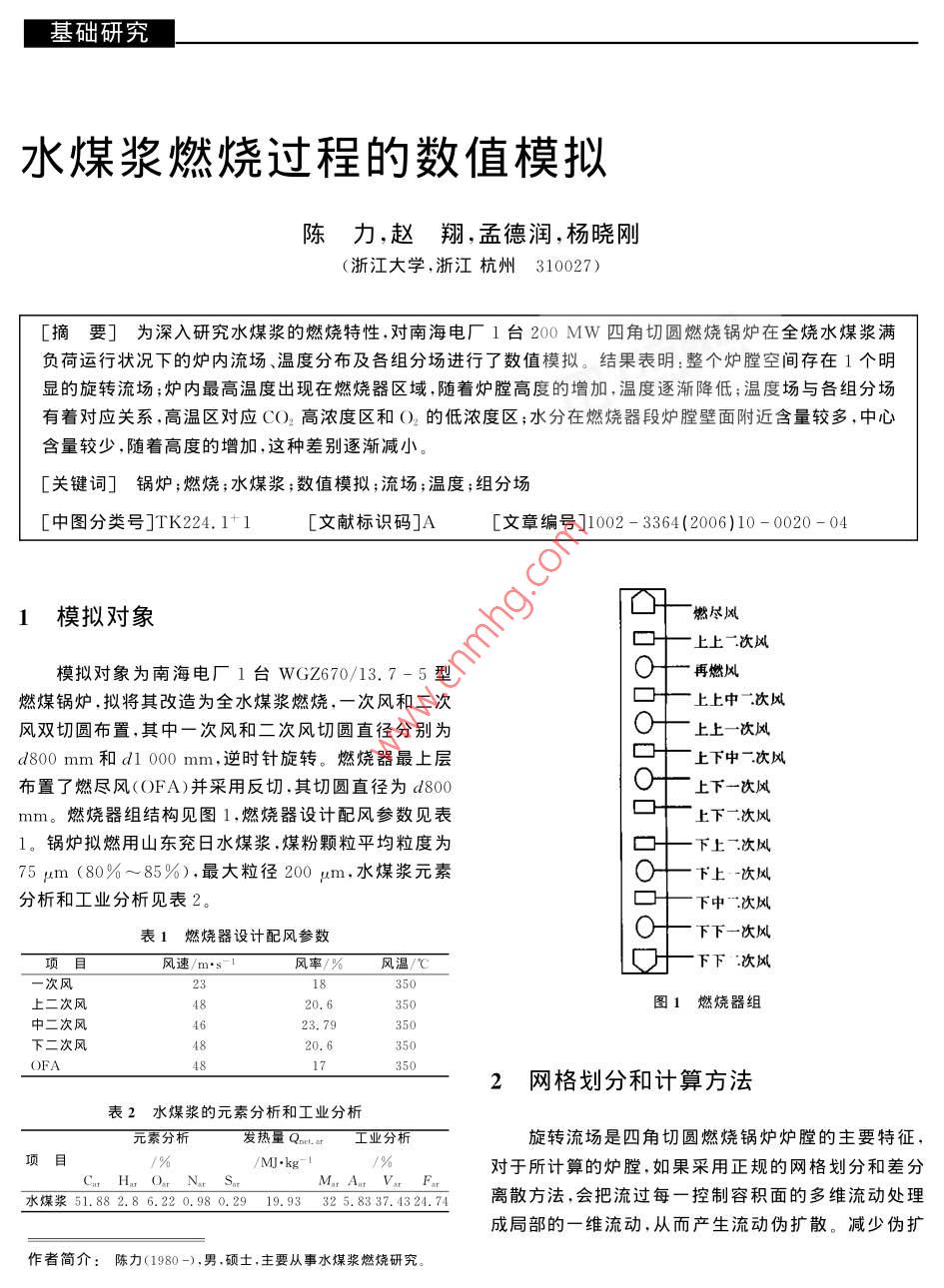 水煤浆燃烧过程的数值模拟