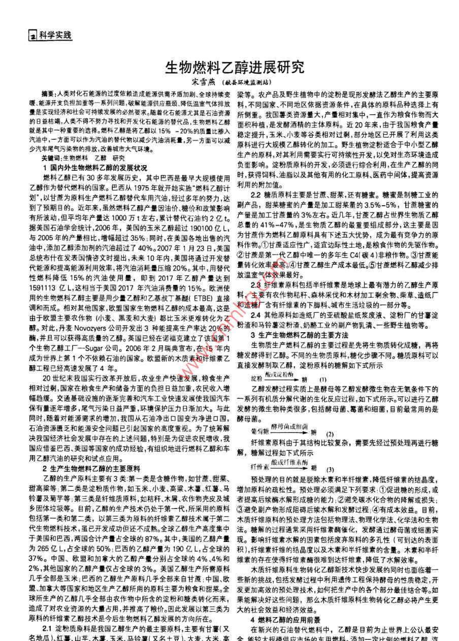 生物燃料乙醇进展研究