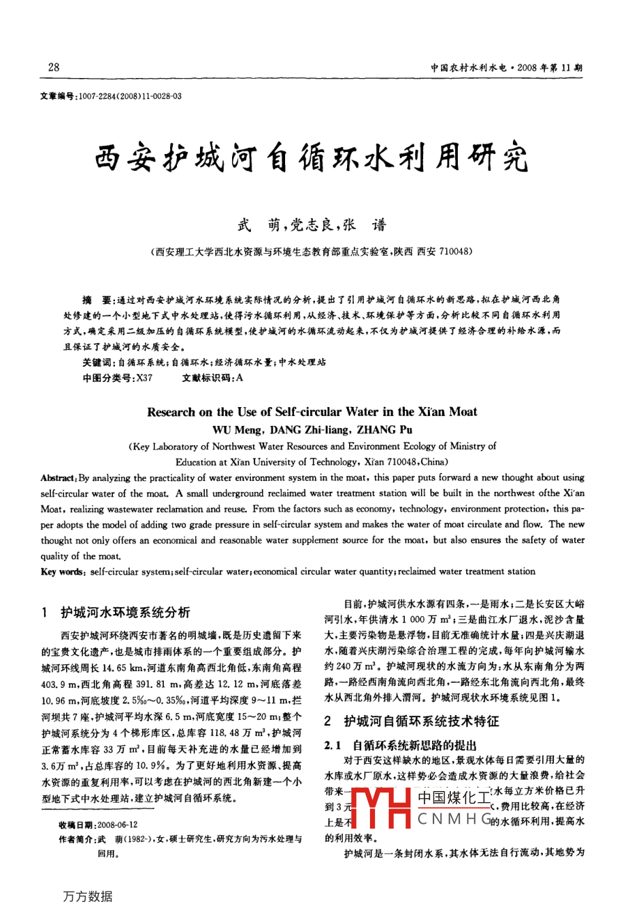 西安护城河自循环水利用研究