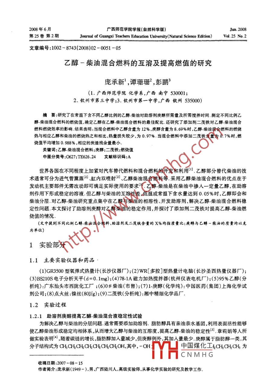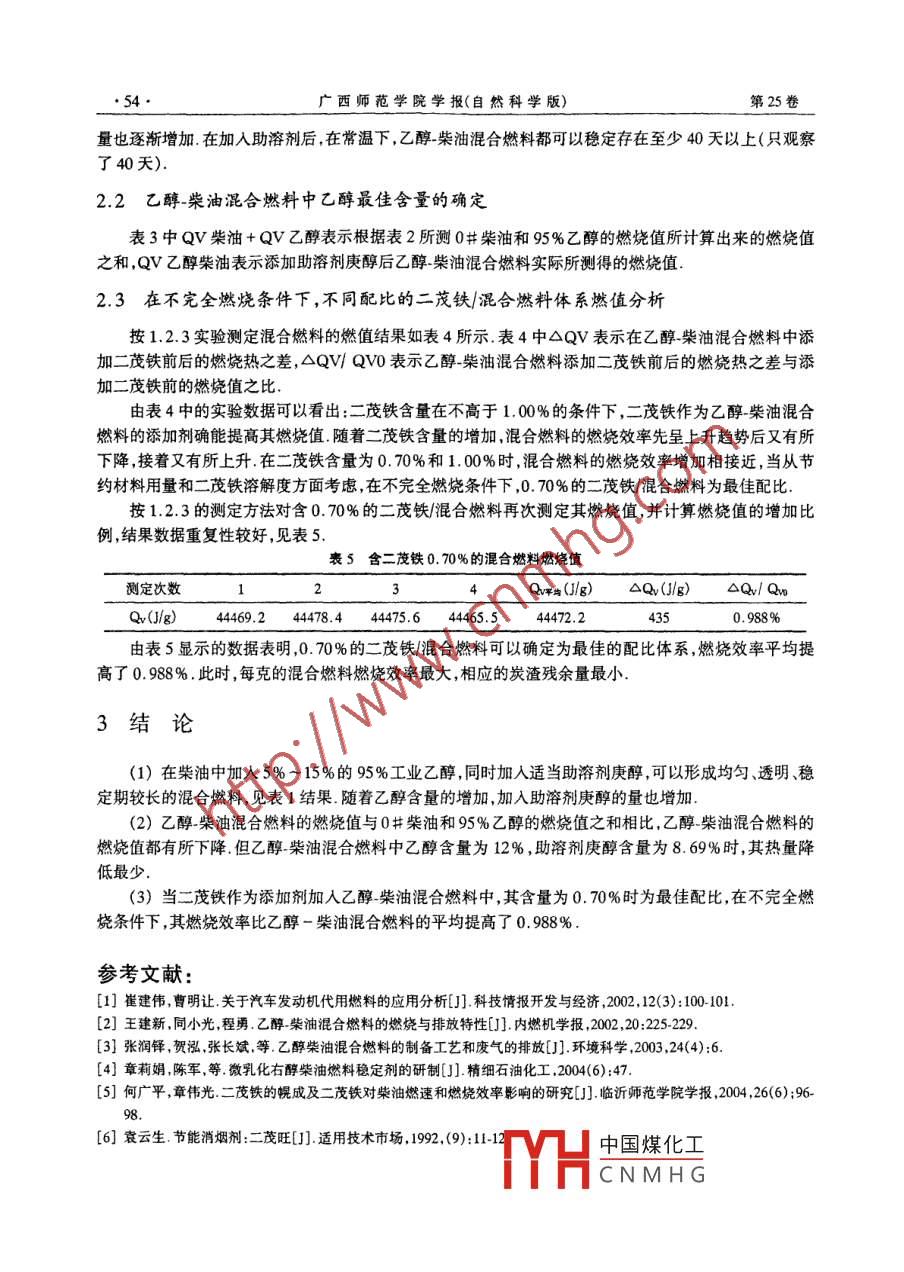 乙醇-柴油混合燃料的互溶及提高燃值的研究