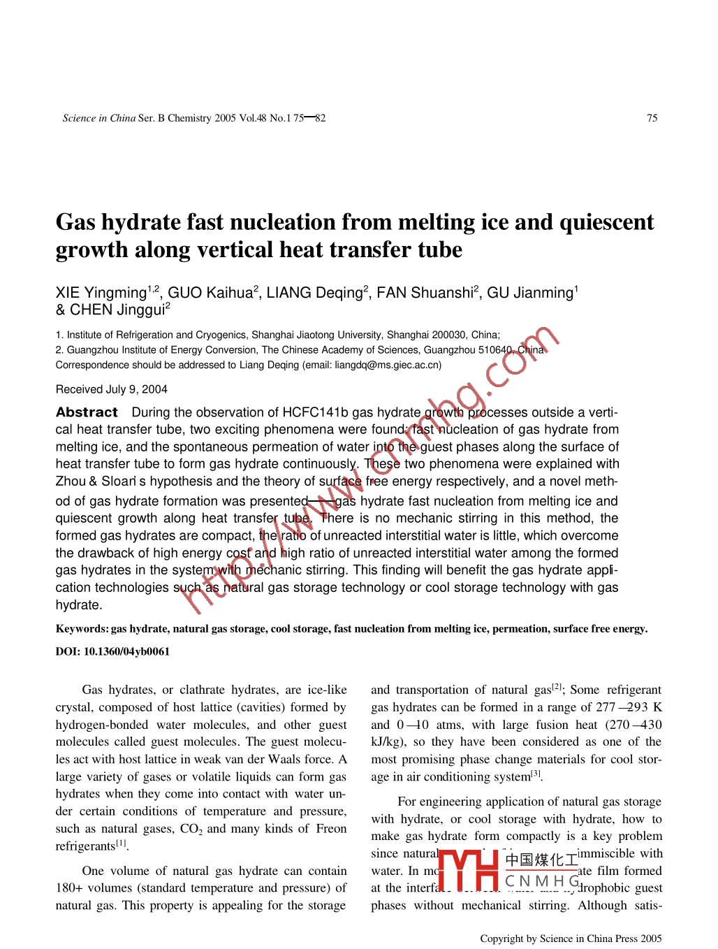 - 作者单位:Institute of Refrigeration and Cryogenics,Guangzhou Institute of Energy Conversion