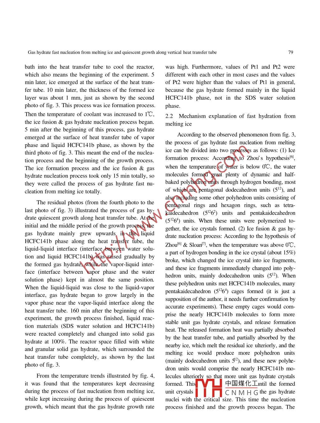 Gas hydrate fast nucleation from melting ice and quiescent growth along vertical heat transfer tube